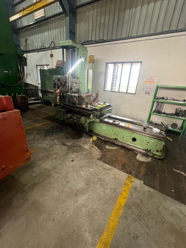 Infrastructure Vertical Turning Lathe (VTL) - DRO Incorporated MAKE : TITAN SPECIFICATIONS Chuck Diameter 2500 MM Swing Diameter 2700 MM Height2000 MM Maximum weight of workpiece10000 KG Horizontal Boring Machine (HBM) - DRO Incorporated MAKE : WMW-UNION Specifications Spindle Diameter 125MM X Axis Length3000 MM Y Axis Height2500 MM Z Axis Length3000 MM W Axis Length1000 MM Table Size2000MMx1800 MM Maximum weight of workpiece7000 KG Radial Drilling Machine (RDM) MAKE : CSEPEL Specifications Arm Length3000MM Spindle Size100 MM Column Height1300 MM Spindle Travel450 MM Vertical Turning Lathe (VTL)-DRO Incorporated MAKE : TITAN Specifications Chuck Diameter1200 MM Swing Diameter1400 MM Height1050 MM Maximum weight of workspace3000 KG Horizontal Boring Machine(HBM)-DRO INCORPORATED MAKE : TOS-VARNSDORF Specifications Spindle Diameter80 mm X Axis Length1200 mm Y Axis Length900 mm Z Axis Length1200 mm W Axis Length500 mm Table Size1100x900 mm Maximum Weight Of Workpiece2000 KG MAJOR LIST OF INSTRUMENTS 1Instrument NameRange 2Vernier Caliper 0-3000 3Vernier Caliper 0-1500 4Vernier Caliper 0-600 5Vernier Caliper0-300 6Vernier Caliper 0-150 7Vernier Caliper-DIGITAL 0-300 8Depth Vernier with extra Nip 0-300 9Depth Vernier with extra Nip 0-600 10Hook Vernier 0-600 11RTJ Vernier 0-300 12Outside Micrometer 0-150 13Outside Micrometer 150-300 14Outside Micrometer 300-400 15Outside Micrometer 400-500 16Outside Micrometer 500-600 17Inside Micrometer-Stem type 50-1000 18Inside Micrometer-Stem type 0-500 19Bore Gauge 18-35 20Bore Gauge 35-60 21Bore Gauge 50-150 22Bore Gauge 160-250 23Height Gauge 0-1000 24Inside Caliper 0-500 25Inside Caliper 0-1000 26Outside Caliper 0-500 27Outside Caliper 0-1000 OTHER FACILITIES AVAILABLE Total HP used-50 HP Factory Area- 3204 Square Feet EOT crane 5 ton capacity -1No Bench Grinder-1No